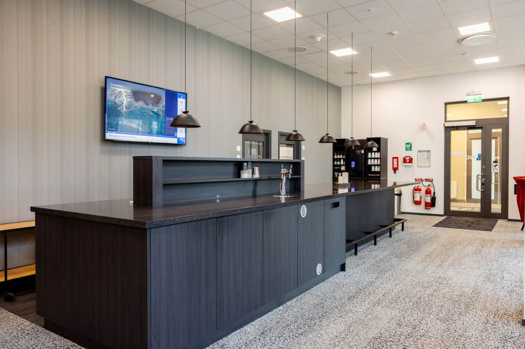 Välkommen till en lokal som sticker ut på alla sätt. Redan i entrén möts du av en elegant reception och en takhöjd på hela 9 meter – en wow-faktor som imponerar direkt.