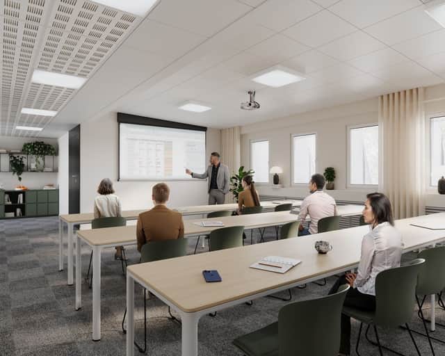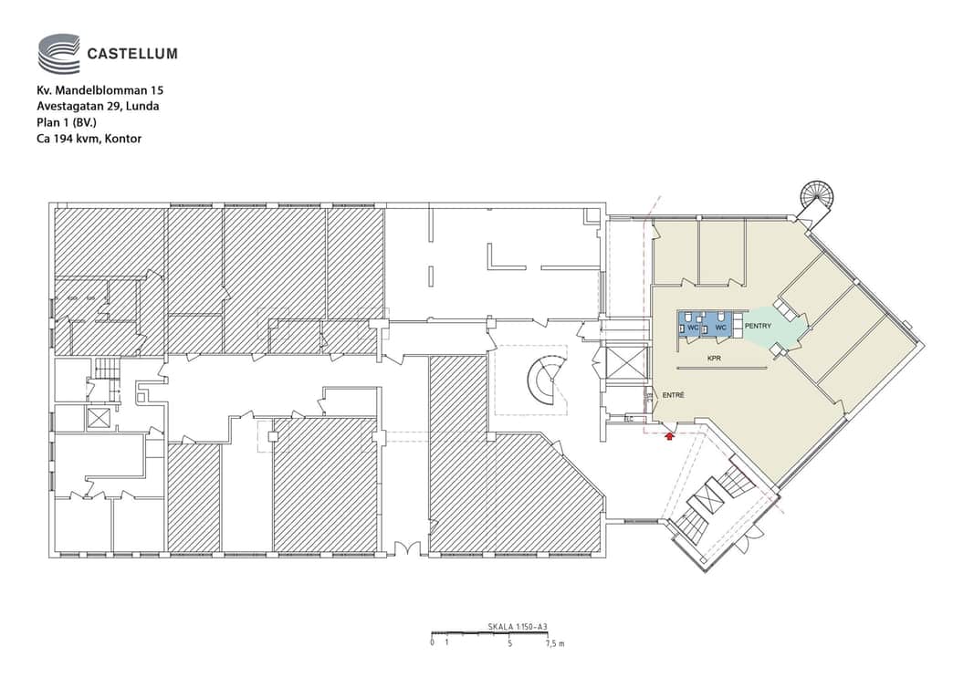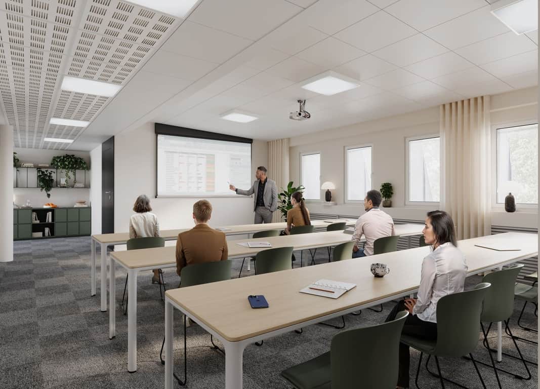 Lokalen lämpar sig utmärkt för vuxenutbildning eller vårdverksamhet, som till exempel rehabilitering. Byggnadens stora fönster och ljusgård skapar en ljus och inbjudande arbetsmiljö.