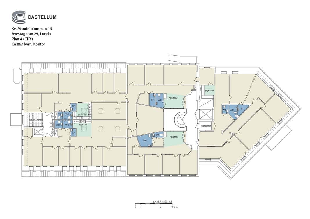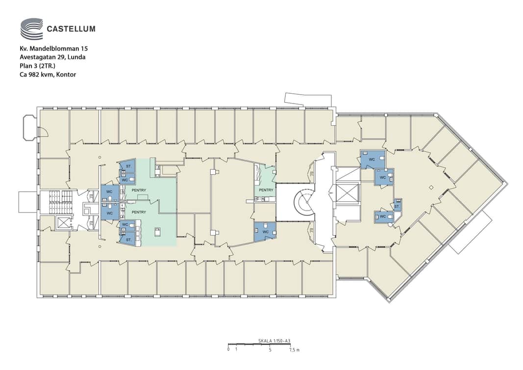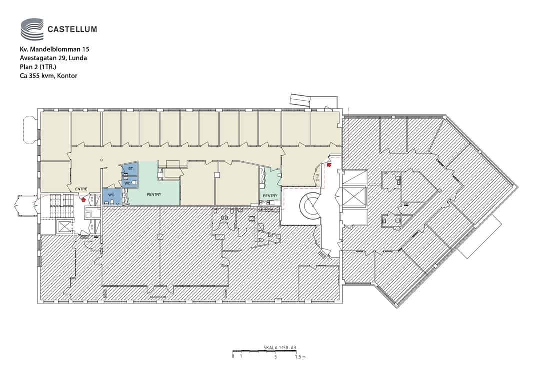 Fastigheten består av kontor och lager i olika plan. Användningsområdet är idag som kontor, utbildning, vård & omsorg samt viss produktion.
