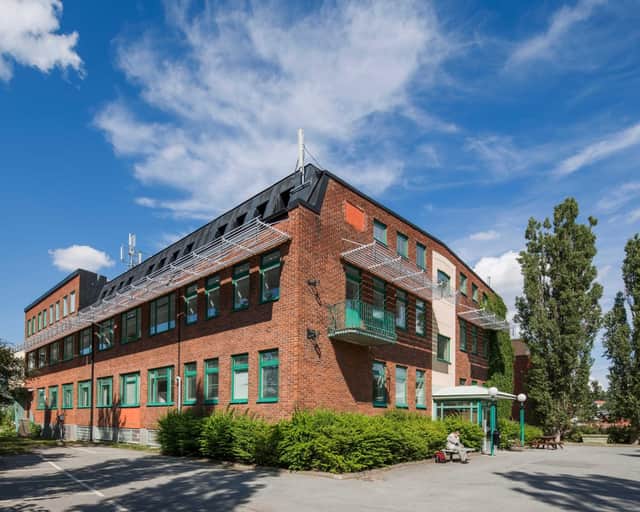 Denna kontorsbyggnad uppfördes redan 1950, men genomgick en omfattande ombyggnad 1990.
