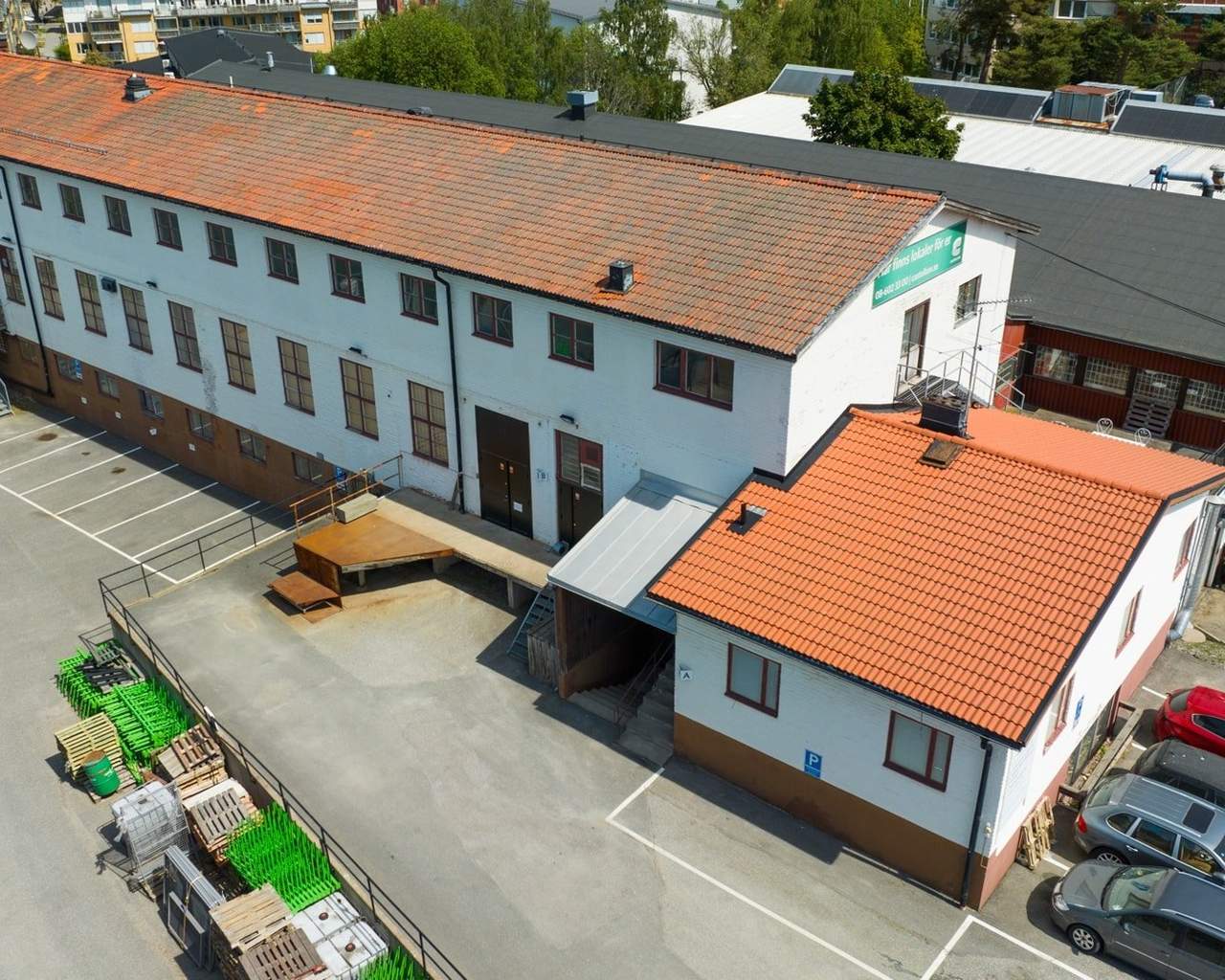 Fastigheten består av kontor och lager i olika plan.