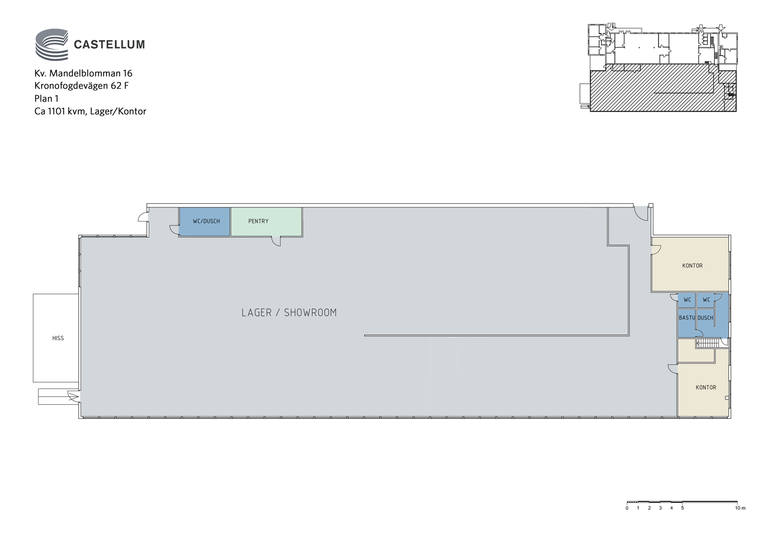 Denna lokal om cirka 1101 kvm erbjuder en funktionell kombination av kontor och lager, utformad för verksamheter med behov av både administrativa ytor och större hanteringsytor.