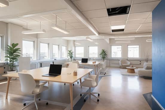 Lokalen har en flexibel planlösning som kan hyras i befintligt skcik eller anpassas helt efter era behov för att skapa en optimal arbetsmiljö. I samband med anpassning strävar vi alltid efter hållbarhet och återbruk för att skapa en modern och miljömedveten arbetsplats.