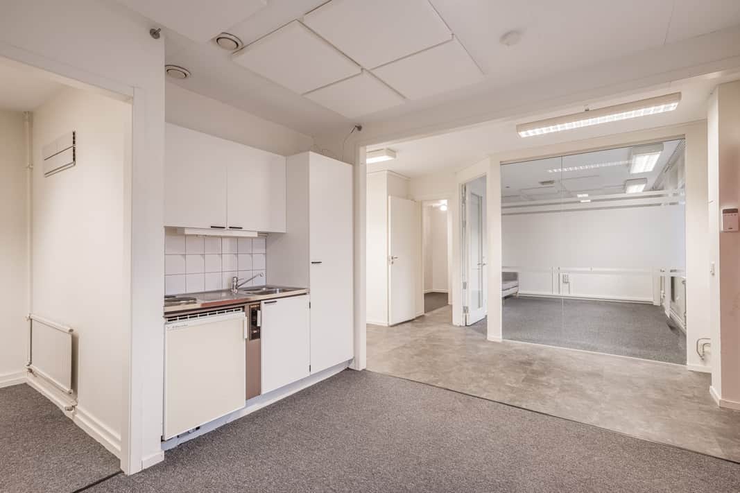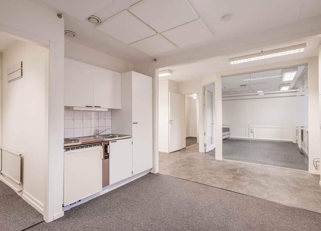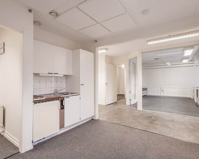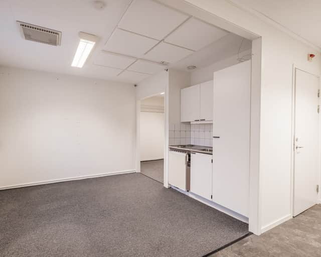 Lokalen om 62 kvm består av en öppen arbetsyta med pentry, ett separata rum samt wc