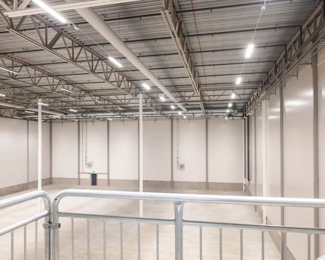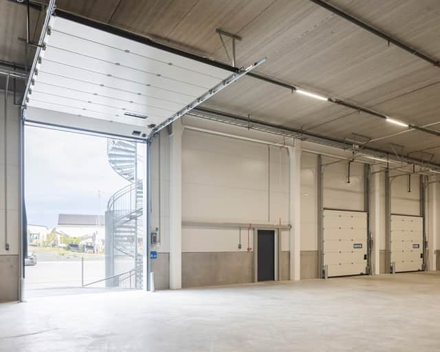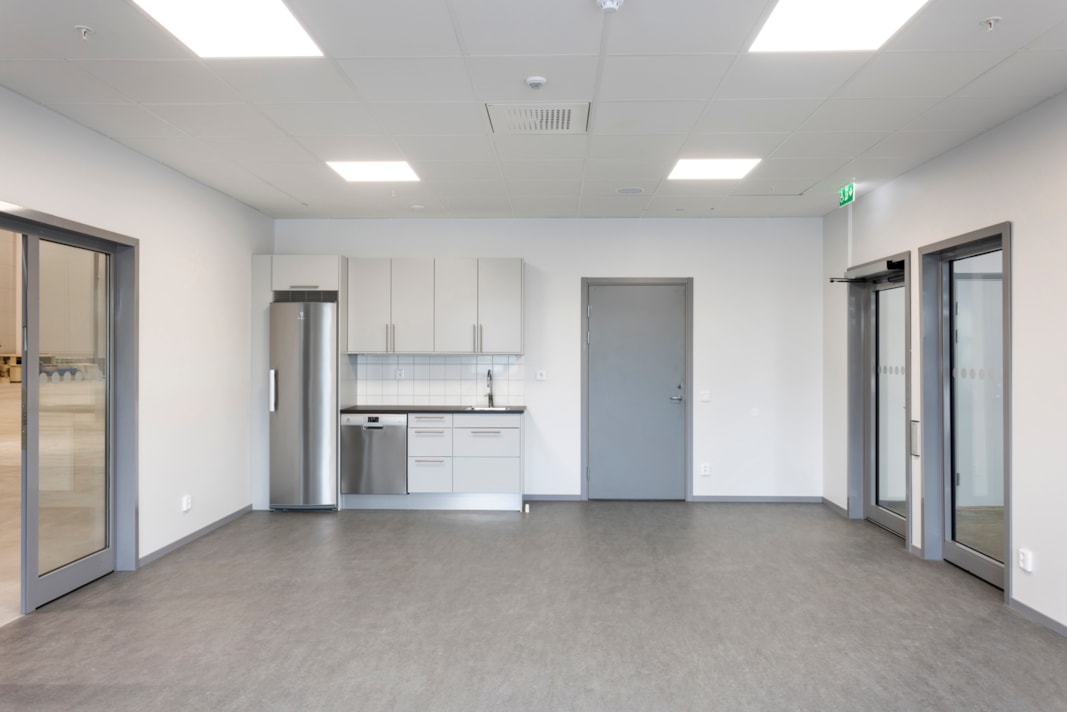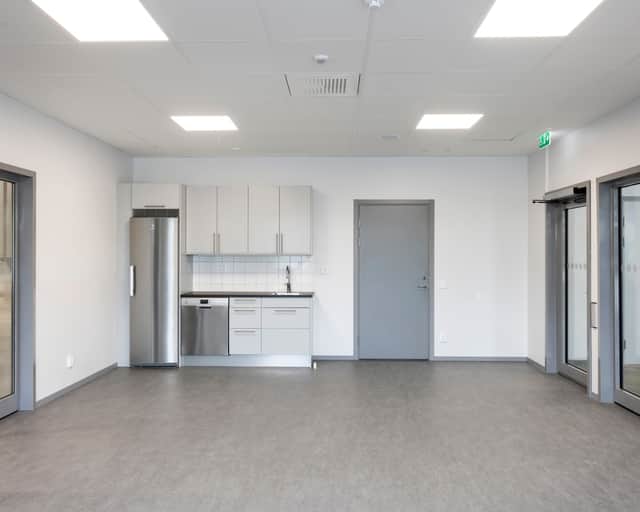 Lagerdelen har två portar med vindtätt lasthus samt en markport med högre porthöjd, vilket ger smidig in- och utlastning. Omklädningsrum finns för både dam och herr.