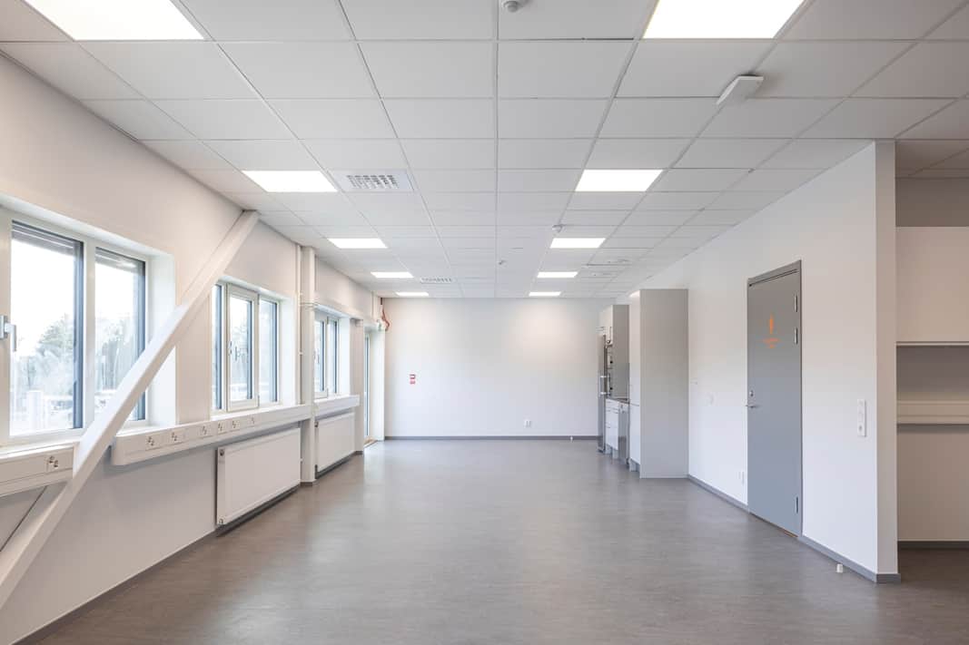 Kontorsdelen är belägen på entresolplan och innehåller flera kontorsrum, pentry/pausyta samt omklädningsrum med dusch och WC. Ytorna ger goda möjligheter till både administration och personalutrymmen.
