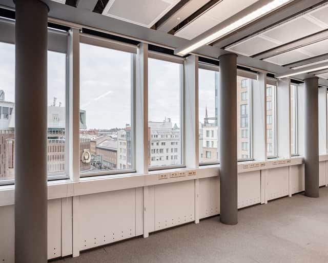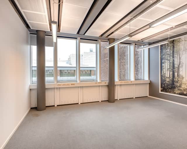 • Ljus lokal med högt läge – stora fönster och ljusinsläpp från två väderstreck skapar en inspirerande arbetsmiljö.