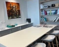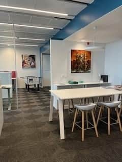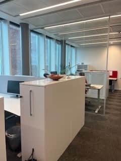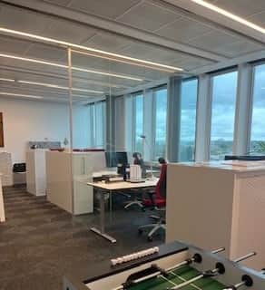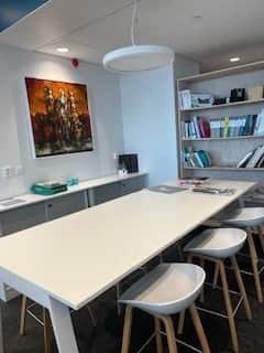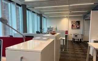 Öppen planlösning med konferensrum. Pentry/matsal i vinkel ger en bra utnytjjande av ytan.