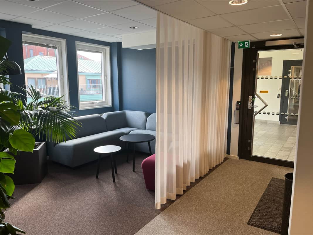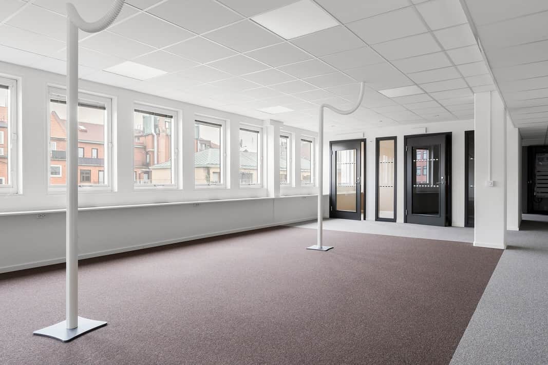 Toppmodern kontorslokal, strategiskt belägen mitt i stadens centrum. Här kan man arbeta ostört i ljusa lokaler med utsikt mot kyrkan och följa årstiderna utanför fönstret. Det finns alla möjligheter att skapa en inspirerande arbetsmiljö där alla kan trivas. Vid lokalanpassningar försöker vi alltid ha återbruk och hållbarhet i åtanke.