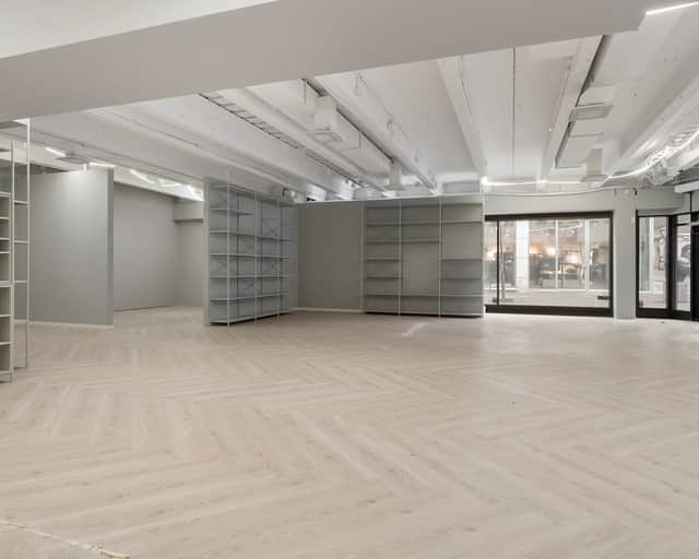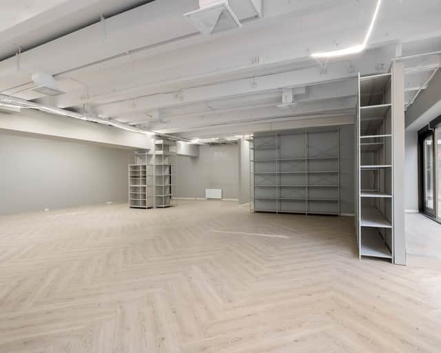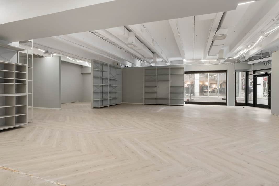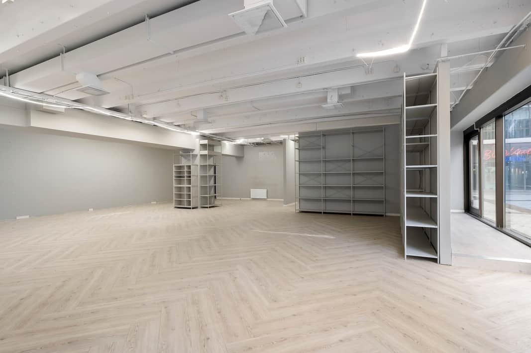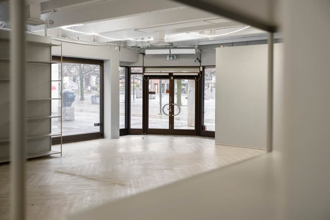 Rymlig takhöjd och stor öppen yta, förråd och pausyta. Generösa stora skyltfönster mot Stora Torget.