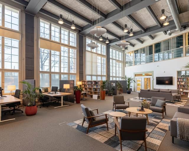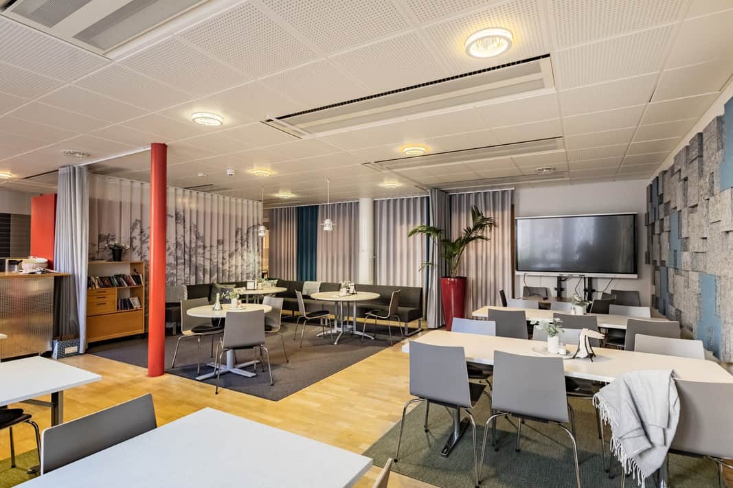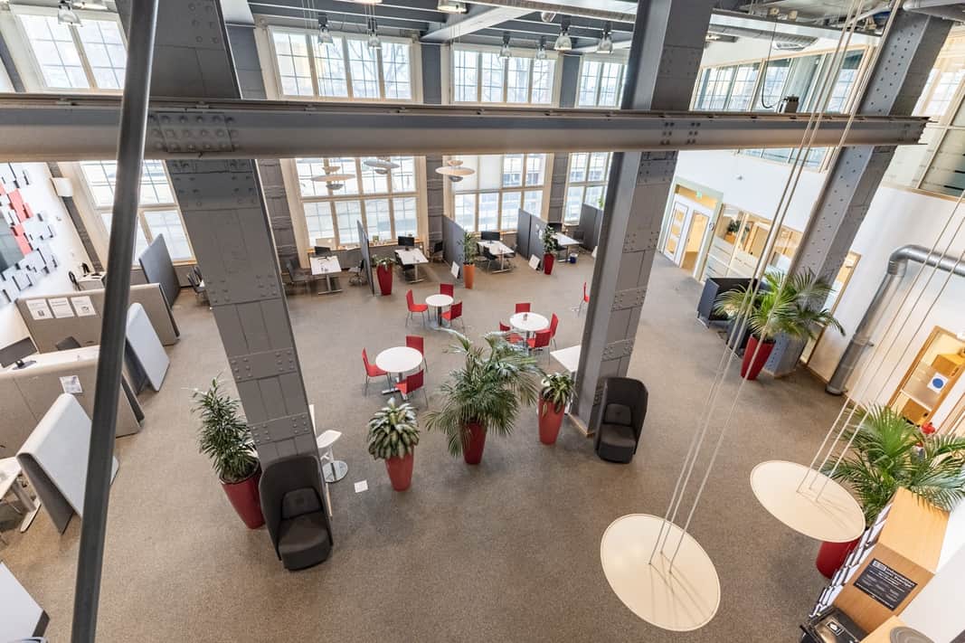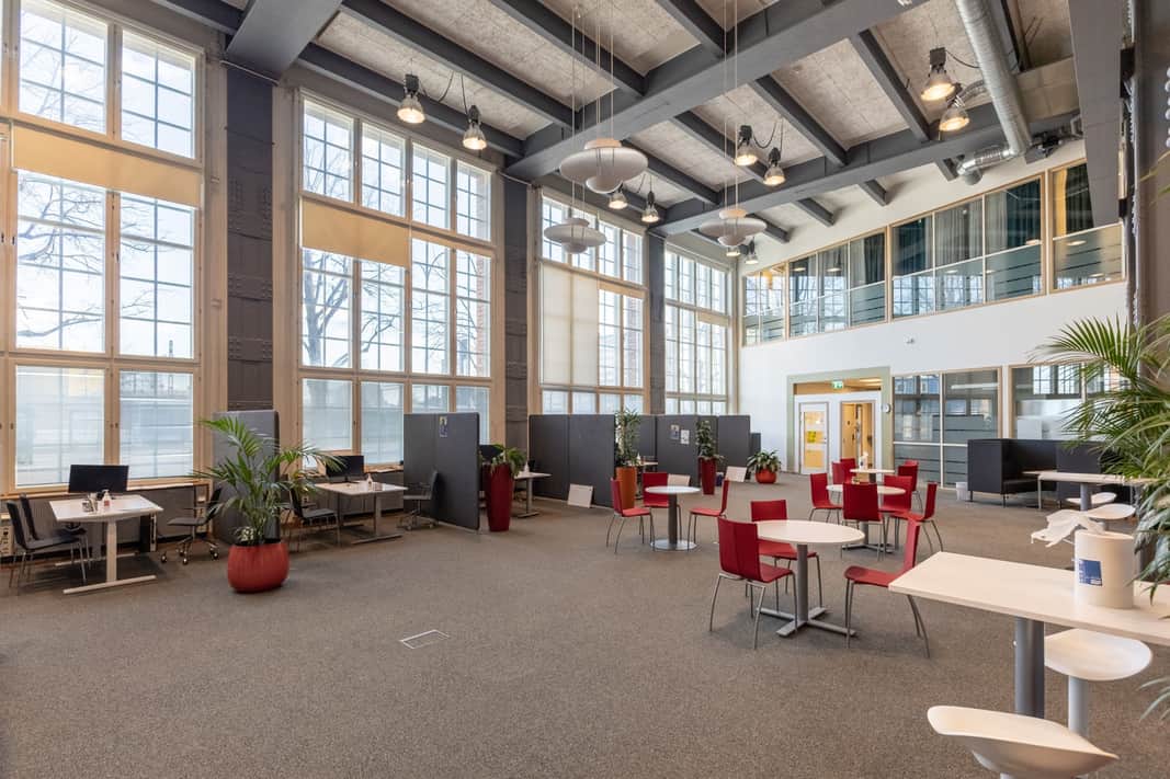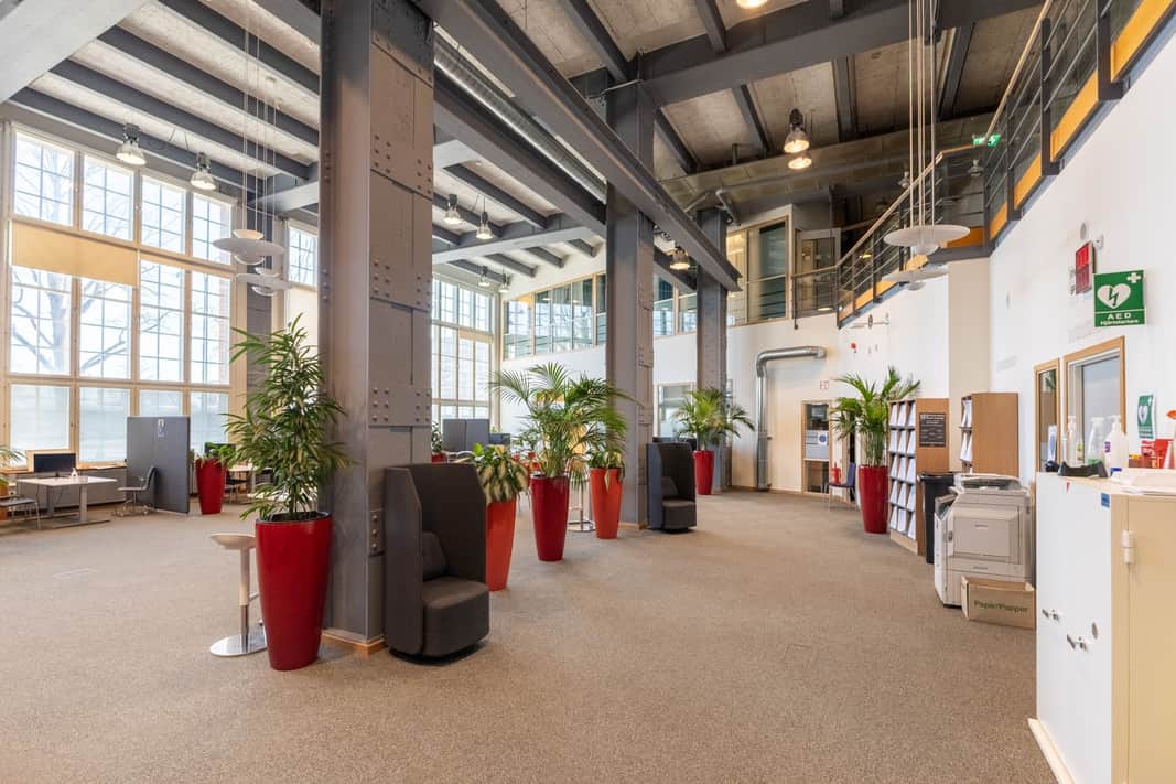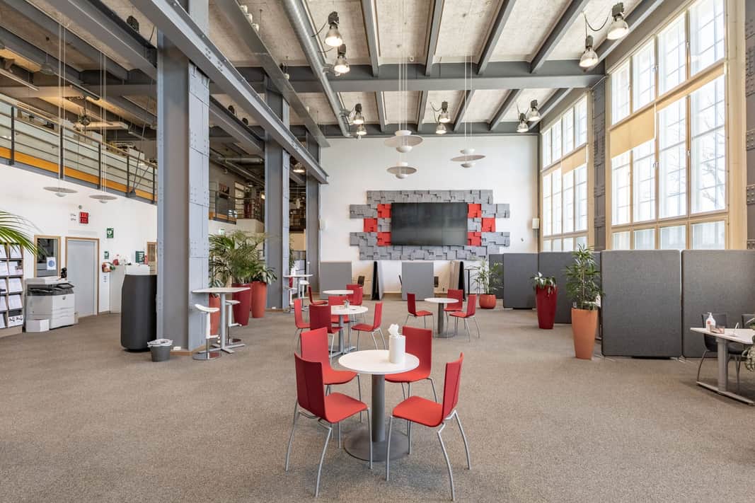 Den moderna interiören möter den vackra industrikaraktären från byggnadens historia. Resultatet är en lokal som utstrålar seriositet, stabilitet och kvalitet – egenskaper som passar er verksamhet perfekt.