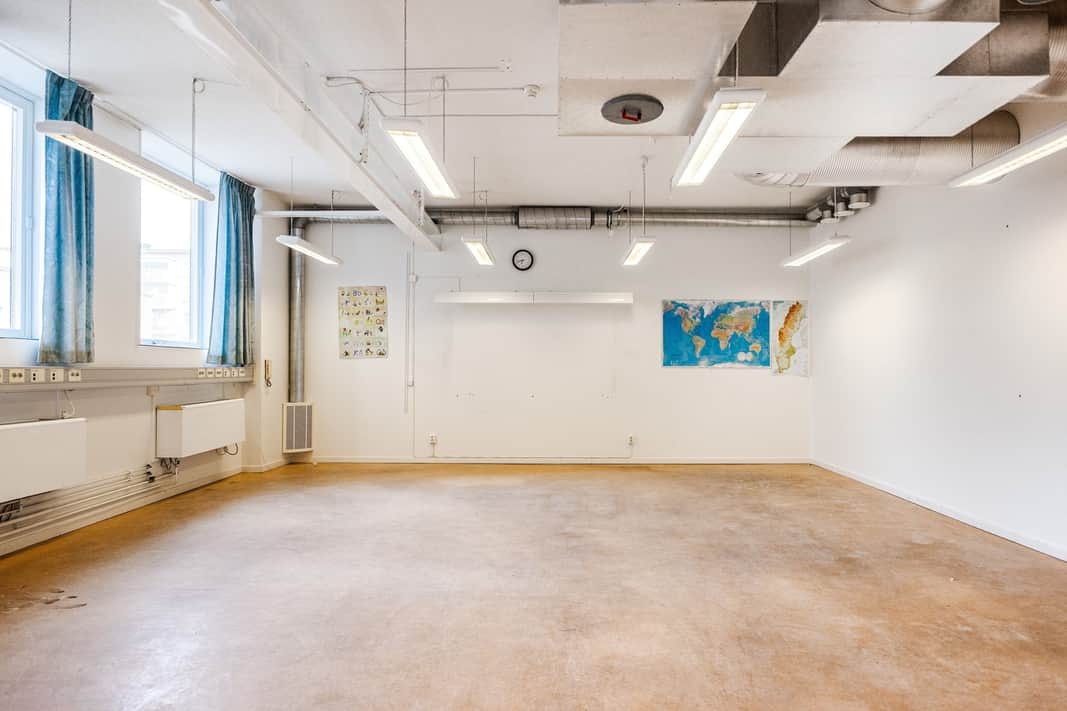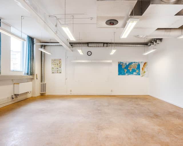 Denna lokal erbjuder en unik möjlighet att skapa en skräddarsydd verkstads- eller produktionsmiljö. Lokalen är i behov av ytskiktsrenovering, vilket ger dig som ny hyresgäst chansen att anpassa planlösning, material och ytor helt efter verksamhetens behov. Den stora godshissen ger direkt access från gatan och in i lokalen, vilket gör hantering av tung utrustning och leveranser enkel och smidig. Lokalen har flera arbets- och mötesytor som kan användas som verkstadsstationer, utbildningsrum eller för projektmöten. Det finns dusch, vilket är praktiskt för personal som arbetar med produktion eller fysiskt arbete, samt ett stort pentry och matsal som kan fungera som personalutrymme för lunch och social samvaro. Den mindre extra pentryenheten kan enkelt byggas om till en kaffe-hörna eller pausyta nära arbetsstationerna.