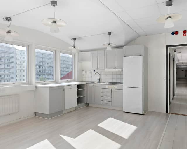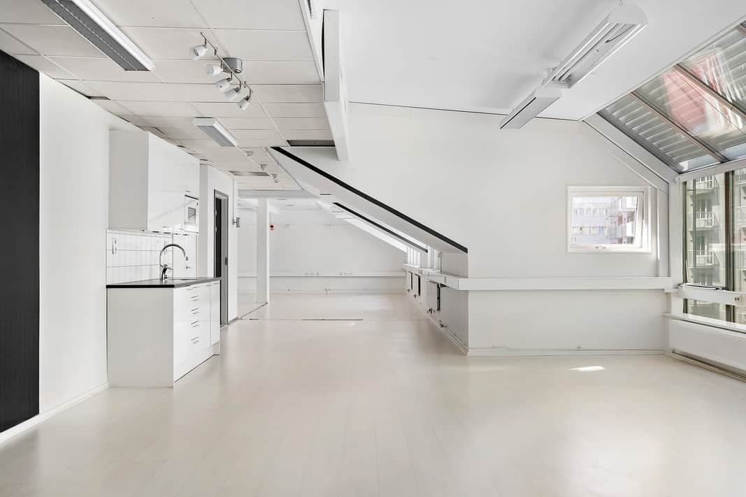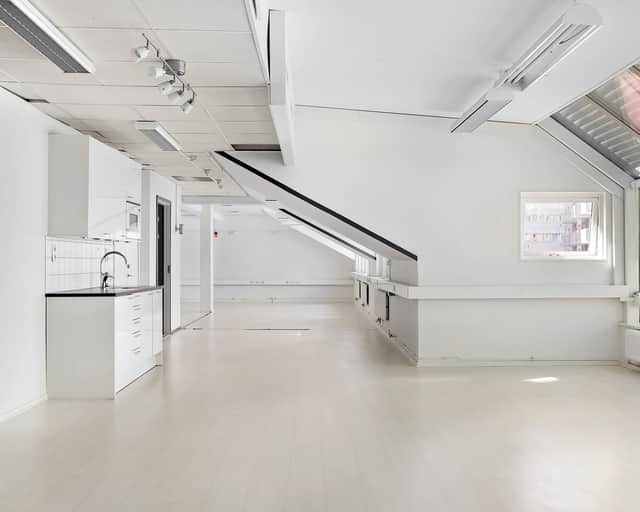 Denna takvåning ger dig en fantastisk möjlighet att sätta din egen prägel på kontorsutrymmet och skapa en arbetsplats som speglar din verksamhet och ger en unik och inspirerande arbetsmiljö.