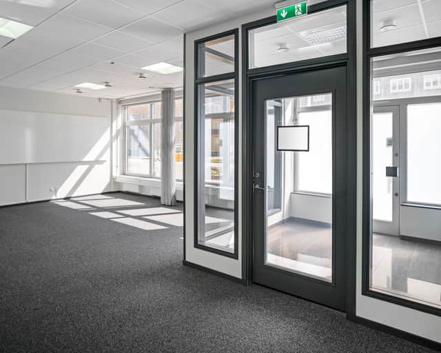 Detta kontor på 436 kvm är redo för inflyttning och passar både moderna kontor, utbildningsverksamheter och vårdlokaler.