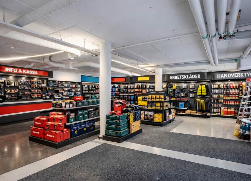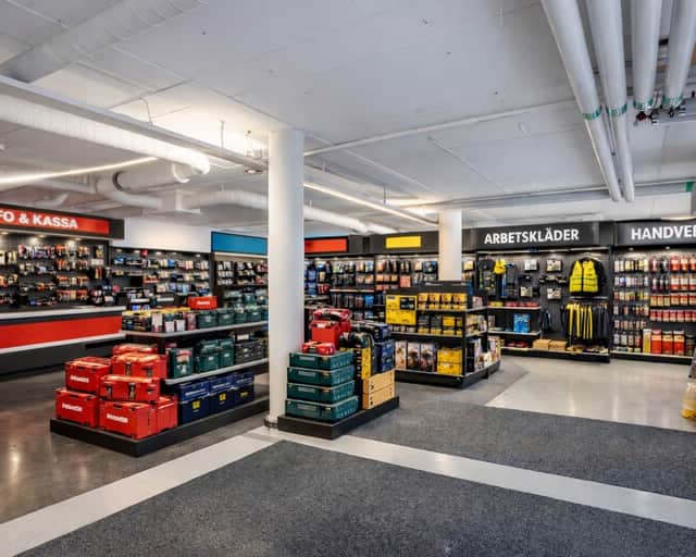 Den genomtänkta planlösningen skapar en smidig logistik mellan butik, kontor och lagerytor – perfekt för verksamheter med både personal- och kundflöden.