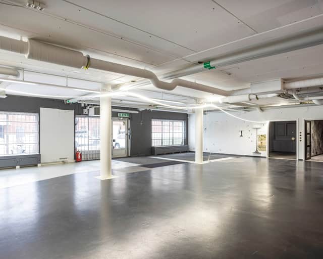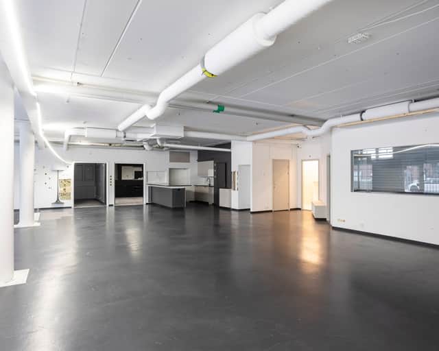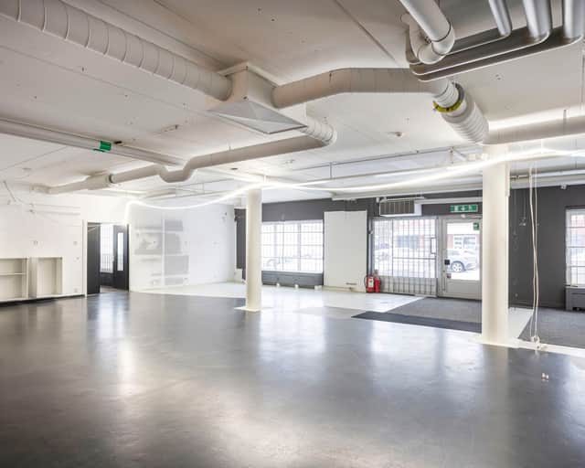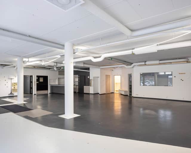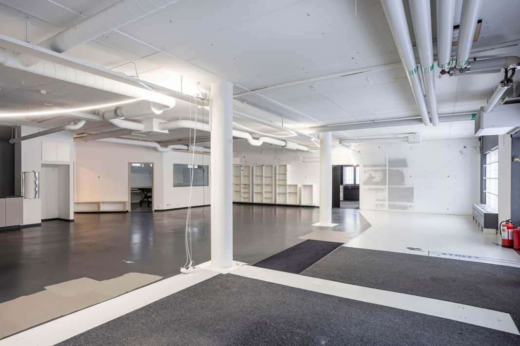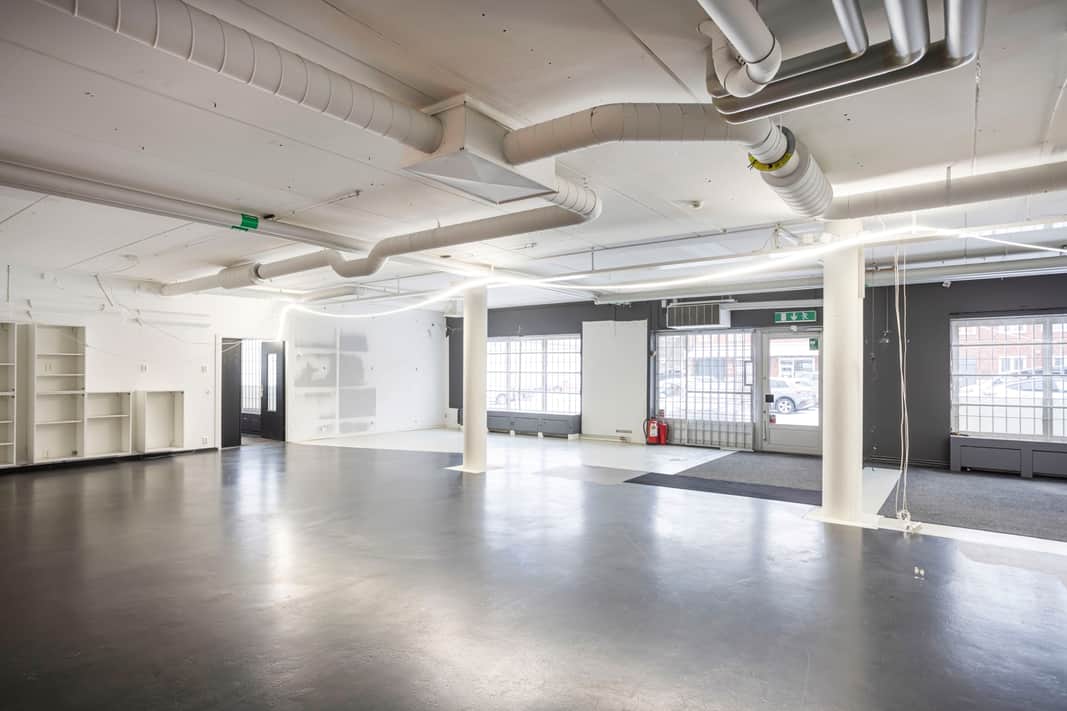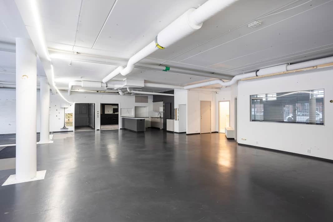 Den stora butiksytan utgör hjärtat av lokalen – ett öppet och lättmöblerat utrymme med fina exponeringsmöjligheter och plats för både produktvisning, kundmottagning och showroom. Den generösa takhöjden i kombination med stora fönster ger en luftig och välkomnande känsla.