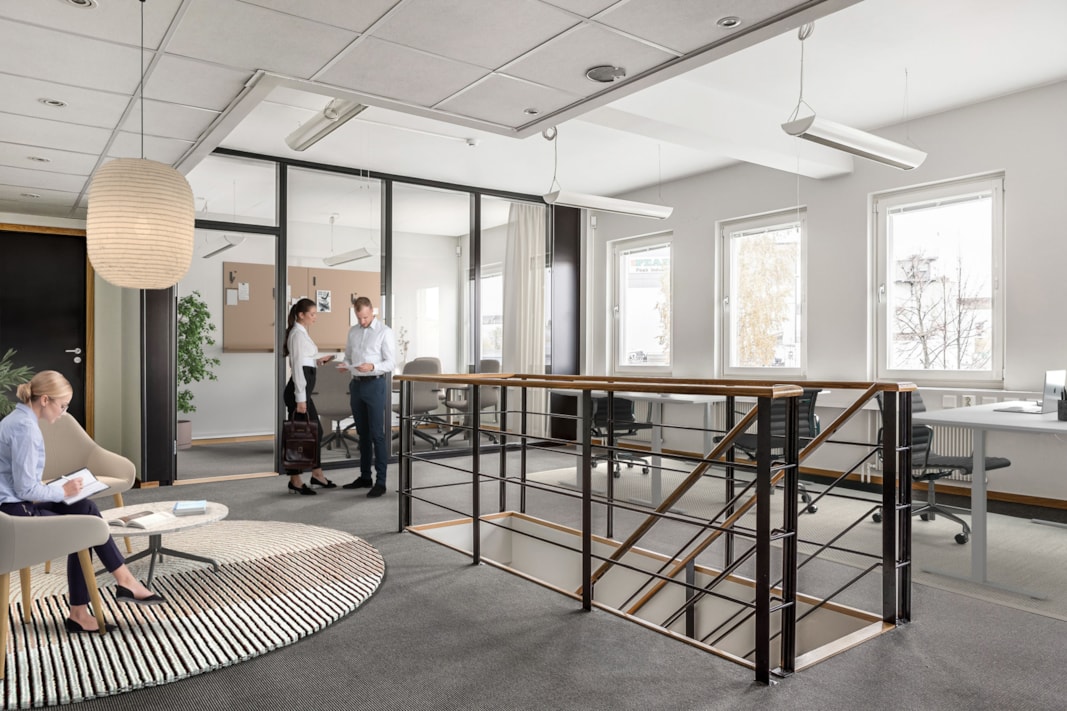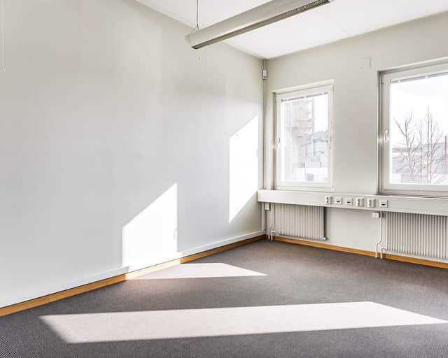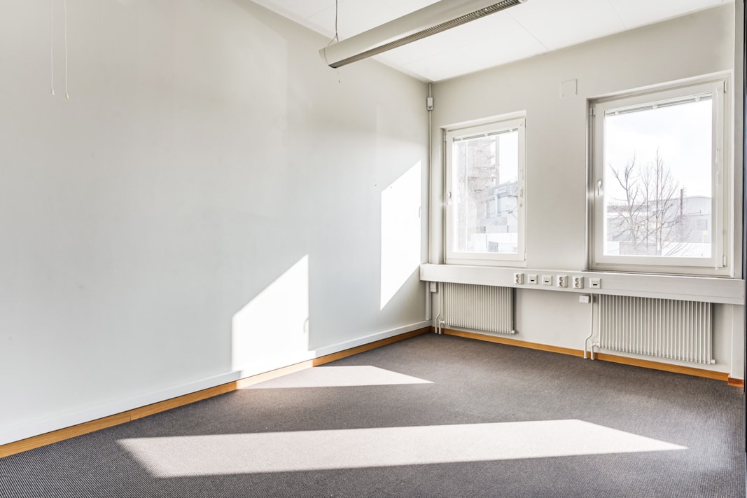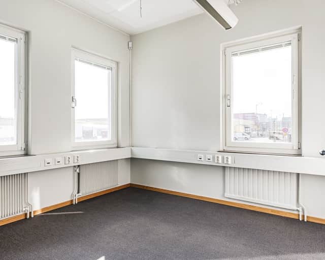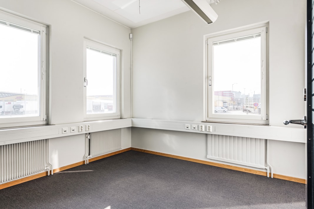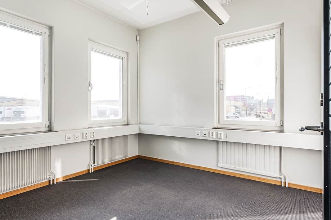 Lokalen har fint ljusinsläpp och nya ytskickt. Kontorets planlösning består av öppen arbetsyta, kontorsum, förråd, omklädningsrum och bastu.