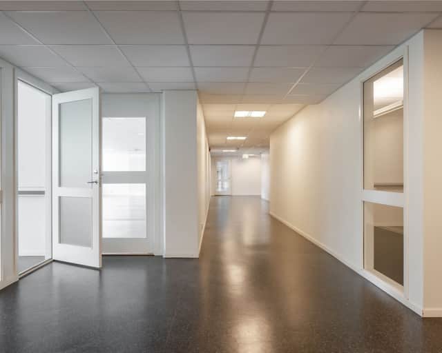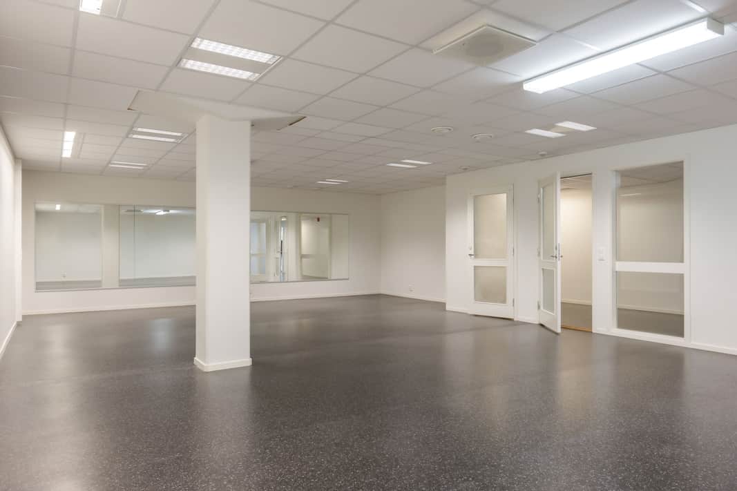Lokalen består i dag av 3 st zoner för öppet kontorslandskap/föreläsningssalar, konferensrum, kontorsrum, pentry och pausyta.