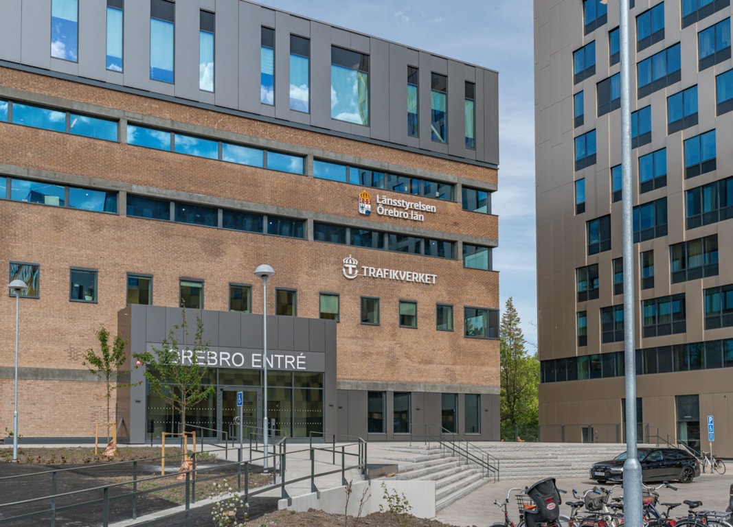 Örebro Entré är fördelat i två fastigheter. Här erbjuds moderna kontor och inbjudande utemiljöer med en gemensam takterrass. I fastigheten finns gymmet Member 24.
