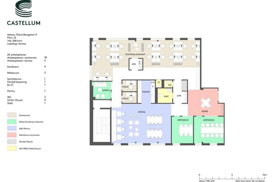 Planlösning enligt hyresgästens önskemål. Lokalen har utformats för att på bästa sätt svara mot hyresgästernas behov och önskemål.