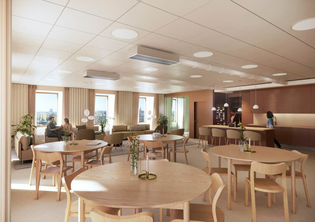 Vi genomför just nu ett omfattande renoveringsprojekt på fastigheten där Utsikten ska etablera sig. Projektet inkluderar en omställning från direktverkande el till energieffektiv bergvärme, vilket minskar både energikostnader och miljöpåverkan. Alla installationer byts ut till moderna lösningar, fönstren renoveras för att förbättra inomhusklimatet, och vi skapar en ny takterrass för ökad trivsel. Återbruk av material är en viktig del av projektet, där vi tar vara på befintliga resurser för att kombinera hållbarhet med modernisering. Inflyttning från Q1 2026.