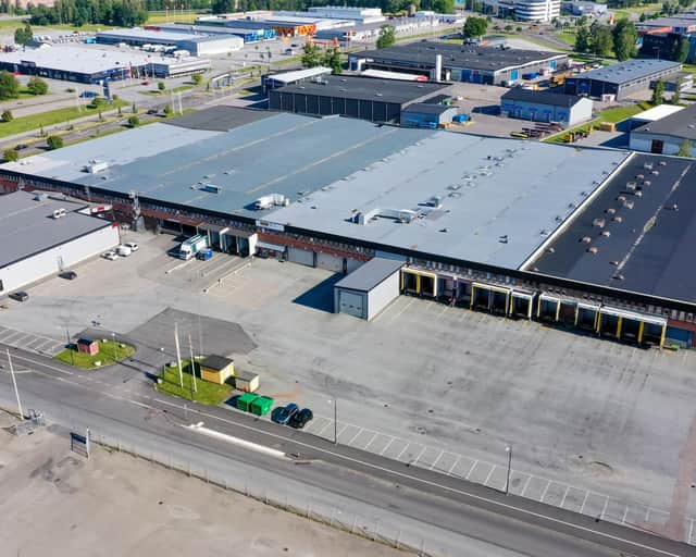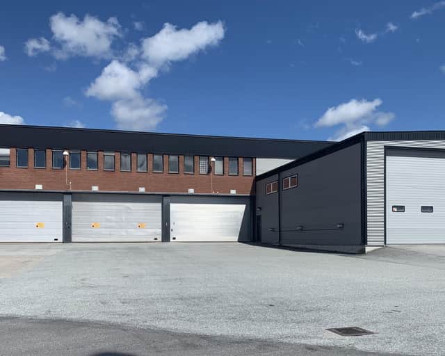 5 400 kvm, med tillhörande kontorslokal om 285 kvm en våning upp. Där erbjuds bland annat två omklädningsrum med duschar, konferensrum och pausyta.