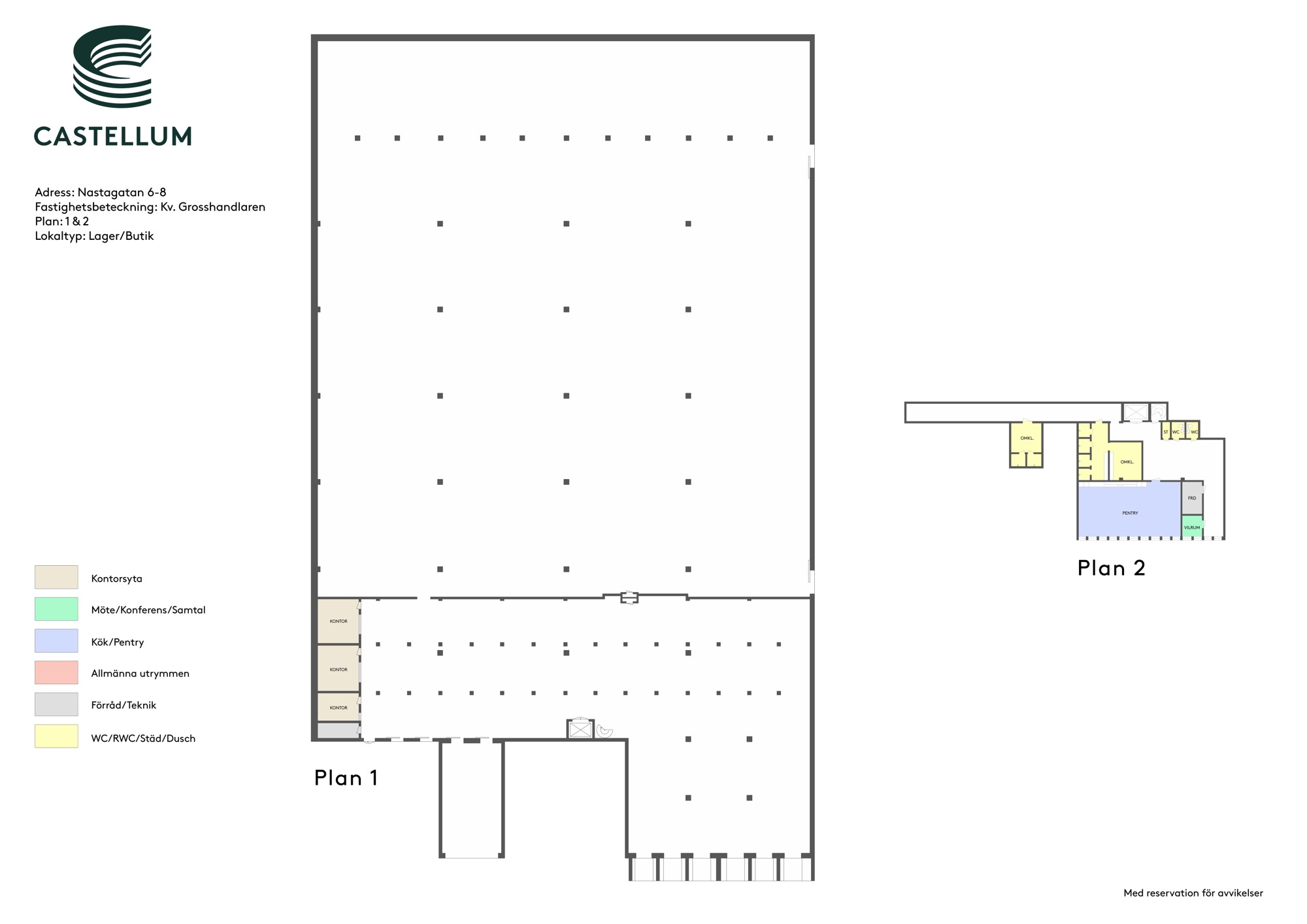 Lagerytan om 5 400 kvm är belägen på plan 1 med tillhörande lastkajer och portar för in- och urlasning. En våning upp på plan 2 erbjuds ett öppet kontorslandskap, samtalsrum, vilorum och konferensrum. Här finns även två omklädningsrum med duschar samt pausrum med tillhörande pentry.