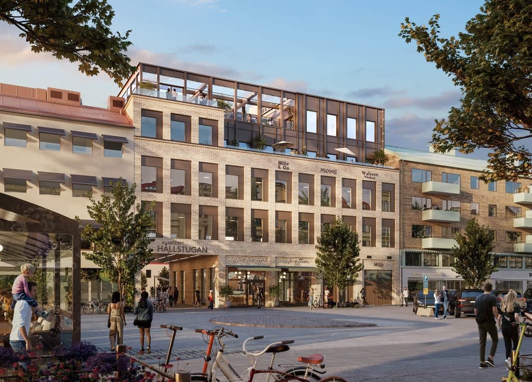 Lokalen omfattar 397 kvadratmeter och ligger en trappa upp. Den lilla balkongen mot det nya restaurangtorget Hållstugan ger en extra dimension – en plats för en kaffepaus i solen eller ett kreativt samtal med utsikt över stadens mest spännande mötesplats.
