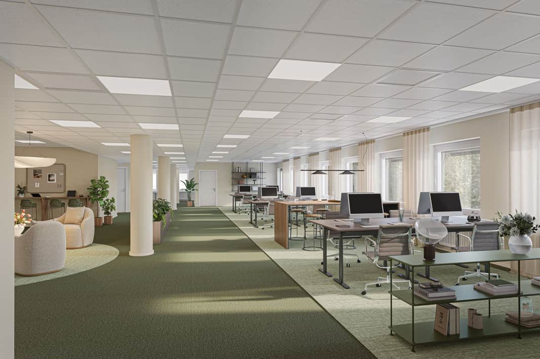 Här erbjuds stora kontorsutrmmen, samtalsrum, konferensrum och även enskilda kontor för fokuserat arbete samt pentry.