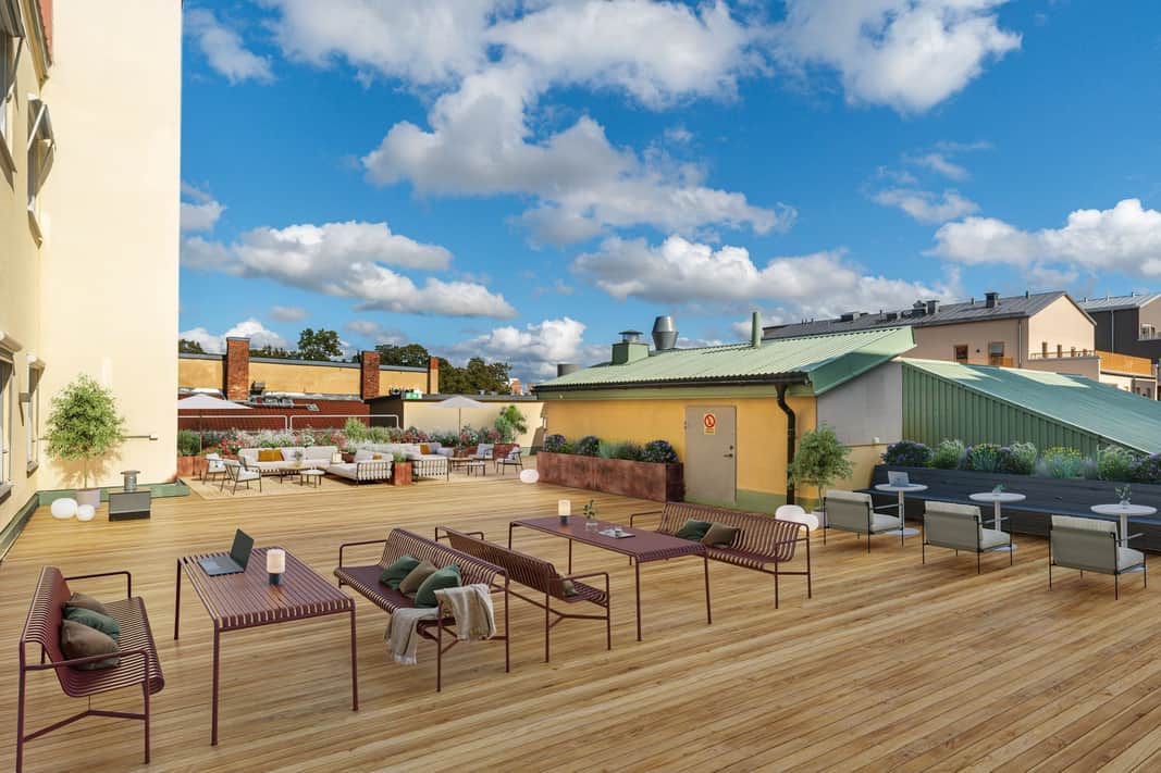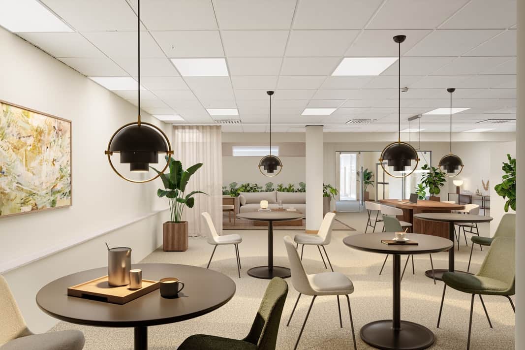 Här hittar ni stora kontorsutrymmen och även här möjlighet till konferensrum och samtalsrum. Dessutom har ni direkt tillgång till innergården, perfekt för avkoppling och kreativa pauser.