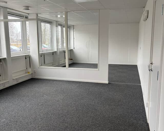 Inkluderat i kontorshotellet är konferensrum, pentry och WC, som ligger en trappa upp från kontoret.