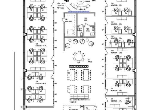 Kontoret är beläget en trappa upp med en planlösning som erbjuder er både egna rum och en mer öppen arbetsmiljö.