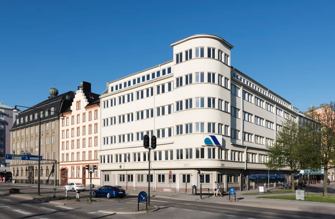 Fin funkisbyggnad belägen med utsikt över Frimurarholmen.