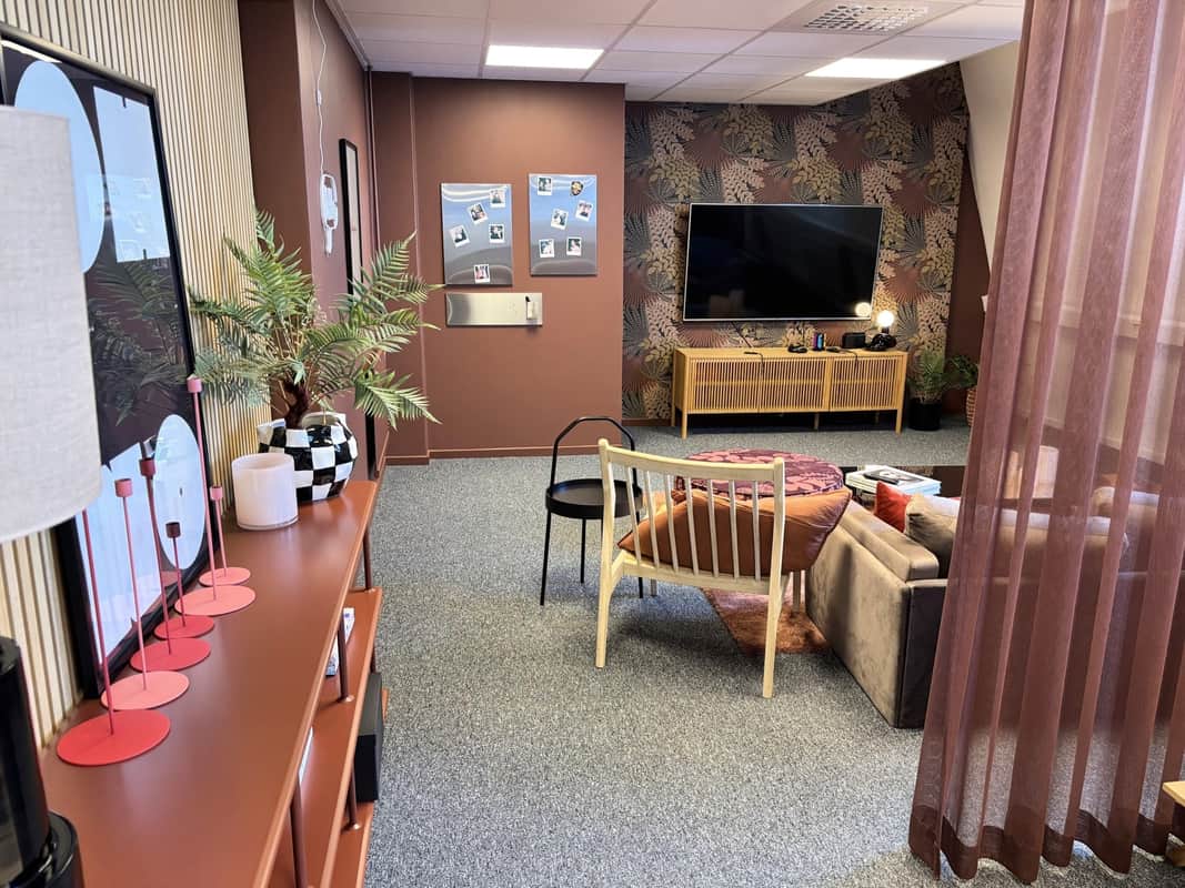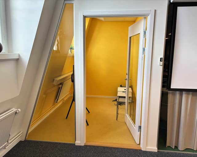 De tidigare hyresgästena har färgsatt kontoret i lekfulla och kulörta färger, perfekt för den kreativa arbetsplatsen som vill få sina medarbetare att känna sig som hemma.