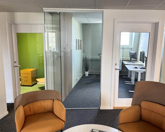Utöver det finns tre samtalsrum, ett konferensrum och fyra kontorsrum i olika storlekar.