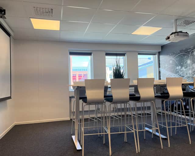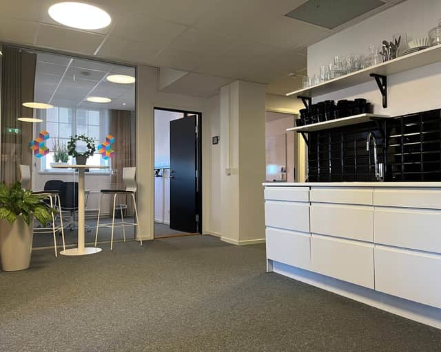 Lokalen är idag fördelad på tre plan, så beroende på er verksamhets storlek kan ni ta allt från 1-3 plan. Här erbjuds både öppna ytor samt egna kontor för 1-2 personer. En bra mix och stora valmöjligheter för era anställda.