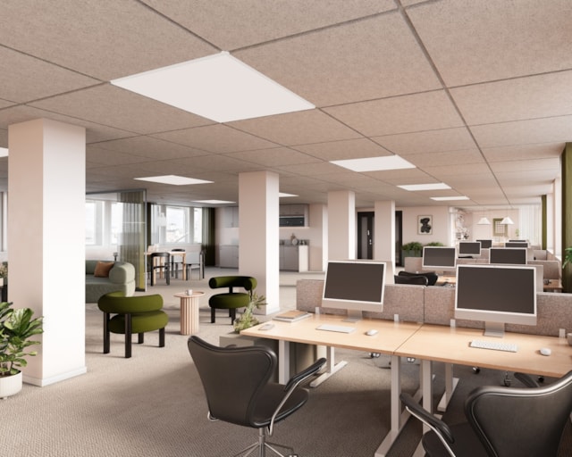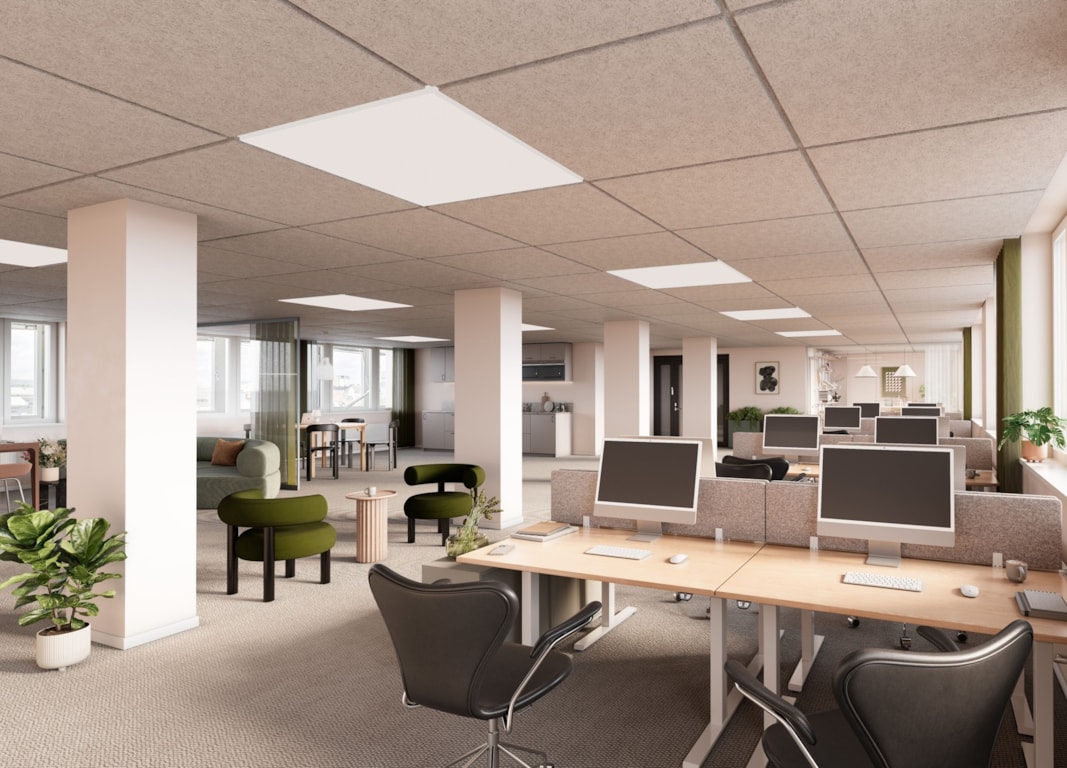 Lokalen anpassas för att maximera både trivsel och produktivitet, med ljusa och luftiga ytor som inspirerar till effektivitet och samarbete.