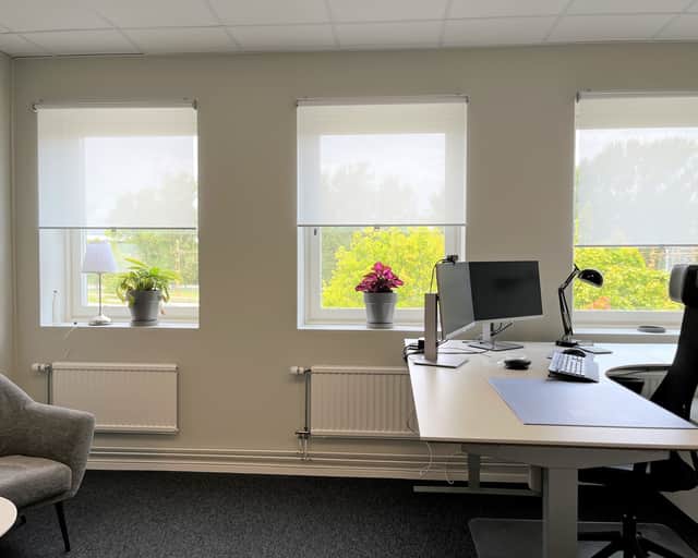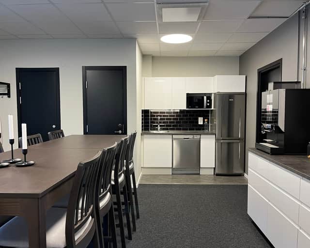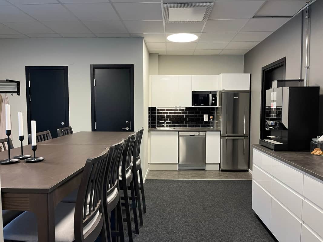 Idag cellkontor med en öppen yta och pentry, men kan med fördel göras om till ett öppet kontorslandskap.
