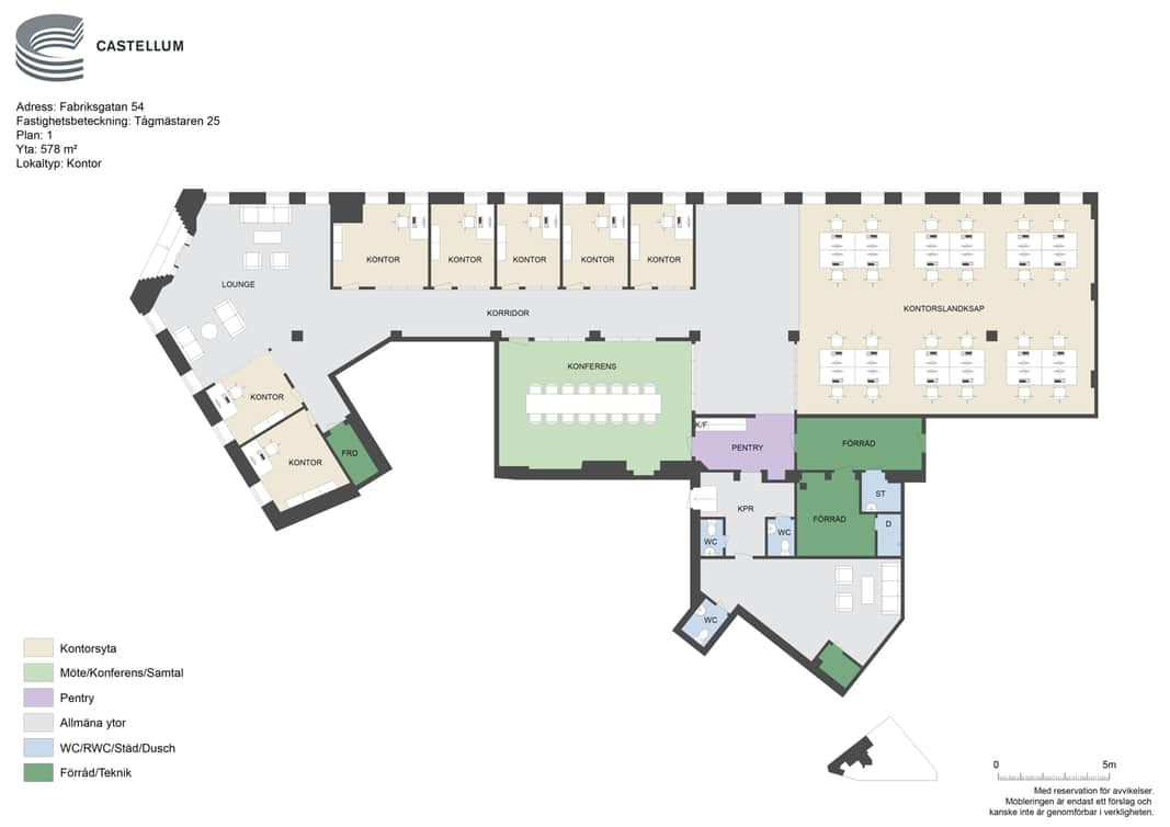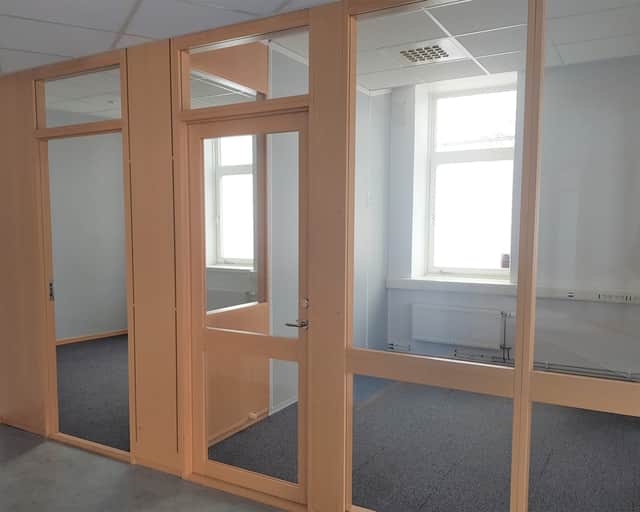 Kontoret består av cellkontor kombinerat med en större öppen yta som lämpar sig för ett öppet kontorslandskap.