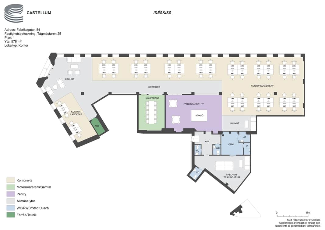 När ni stiger in i lokalen möts du av en ljus och öppen entré perfekt för att ta emot kunder och besökare. Kontoret består av cellkontor kombinerat med en större öppen yta som lämpar sig för ett öppet kontorslandskap. I anslutning till entrén finns en kundparkering samt cykelparkering.