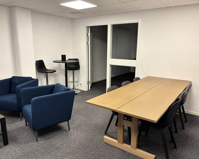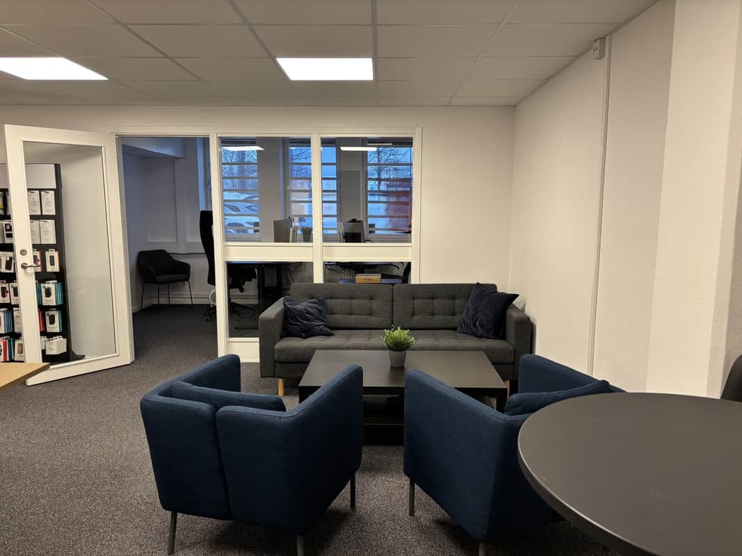 I anslutning till pentryt finns en generös pausyta med plats för både lunchbord och kaffehörna.