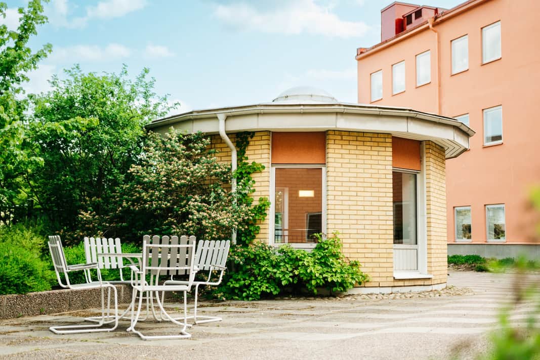 Fastigheten har en gemensam upphöjd innergård med sittplatser där ni kan njuta av förmiddagskaffet samtidigt som ni knyter nya kontakter i huset.