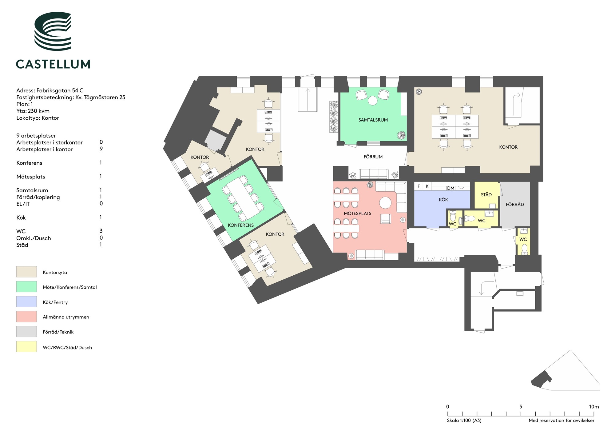Lokalen är idag uppdelad på 6 rum i olika storlekar varav 3-5 kontor/föredetta provningsrum/vinkällare samt en pausyta med separat pentry.