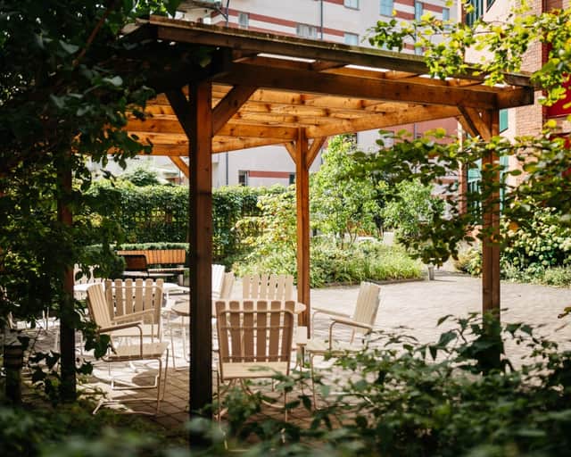 Garage för hyresgäster. Låsta cykelgarage. Till kontorshotellet finns inga garageplatser att tillgå.