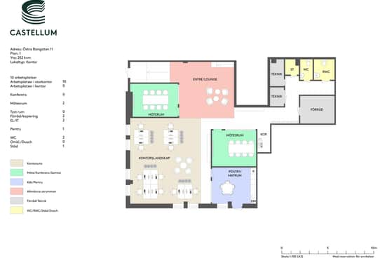 Lokalen har ett fint ljusinsläpp från flertalet fönsterpartier och bifogad idéskiss erbjuder er en tilltalande och balanserad planlösning, med både öppna/sociala ytor och möjlighet till fokusarbete. Här finns även möjlighet att påverka planlösningen.