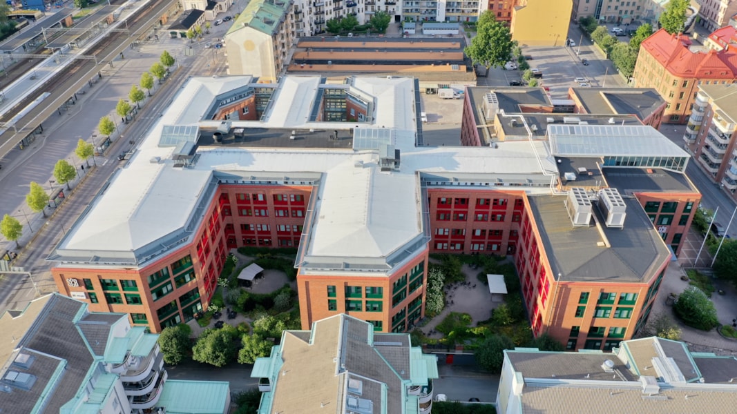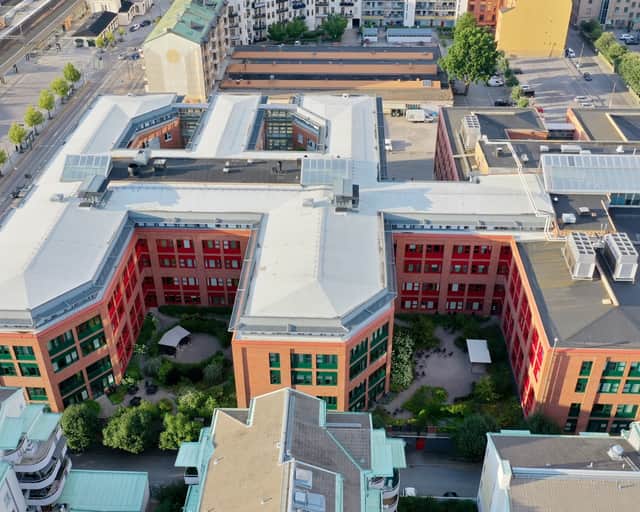 Fastigheten som är miljöcertifierad enligt Breeam-In-Use Good.