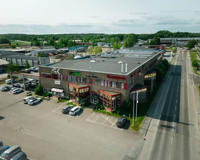 I fastigheten finns butiks-, kontors- och lagerlokaler. Förnyelsebar fjärrvärme och grön el.