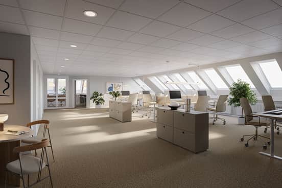 Lokalen på plan 9 har en smart och flexibel planlösning som passar perfekt för både kreativt samarbete och ostörd arbetsro. Här finner du ett öppet landskap som ger en ljus och luftig känsla, men med goda möjligheter att enkelt skärma av mellan de olika arbetsplatserna för att skapa en mer privat arbetsmiljö när det behövs. Lokalen är utrustad med två moderna mötesrum samt mindre samtals- och fokusrum, idealiska för både gruppmöten och enskilt arbete i en ostörd miljö. Det fräscha och stilrena köket är en naturlig samlingsplats, med en generös social lunchyta som bjuder in till avkoppling och spontana samtal med kollegor. Den här planlösningen erbjuder den perfekta balansen mellan öppenhet och möjlighet till avskildhet, vilket skapar en trivsam och produktiv arbetsplats för både små och stora team.