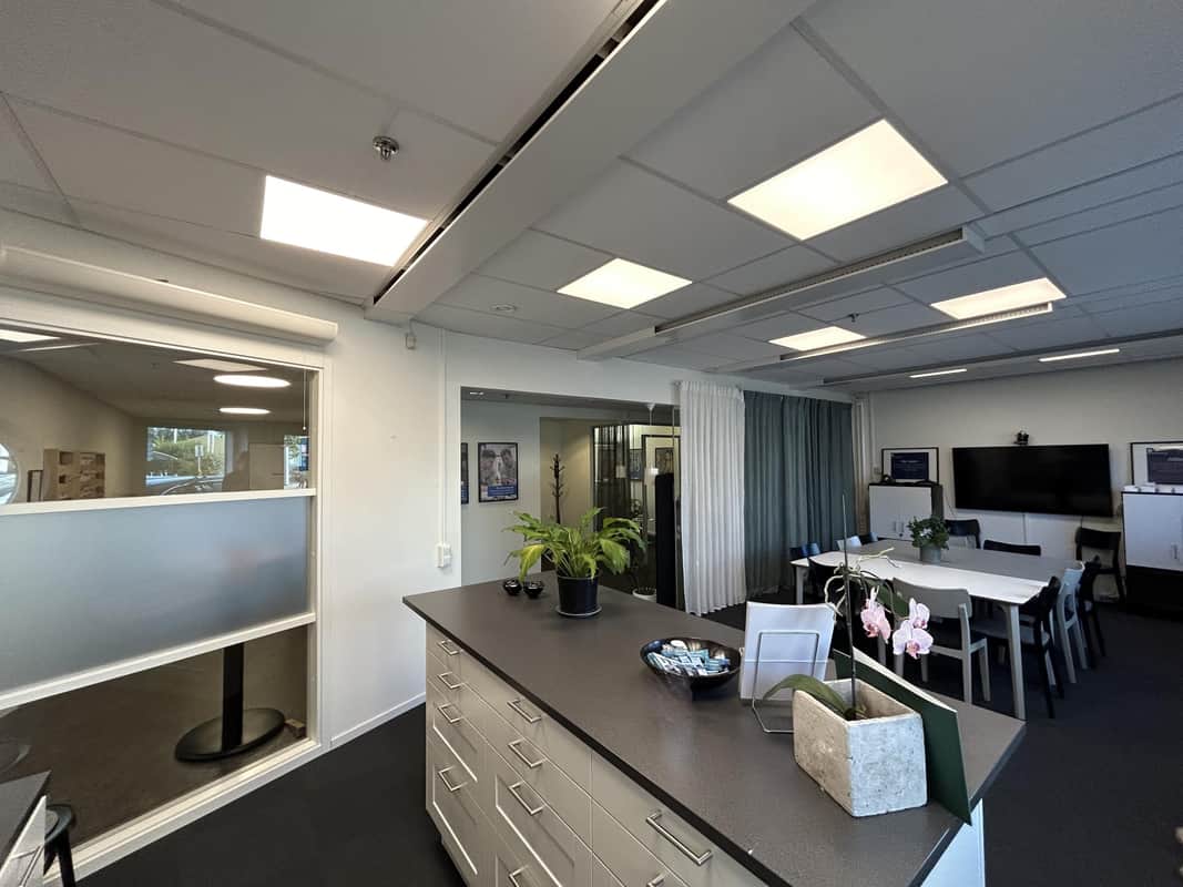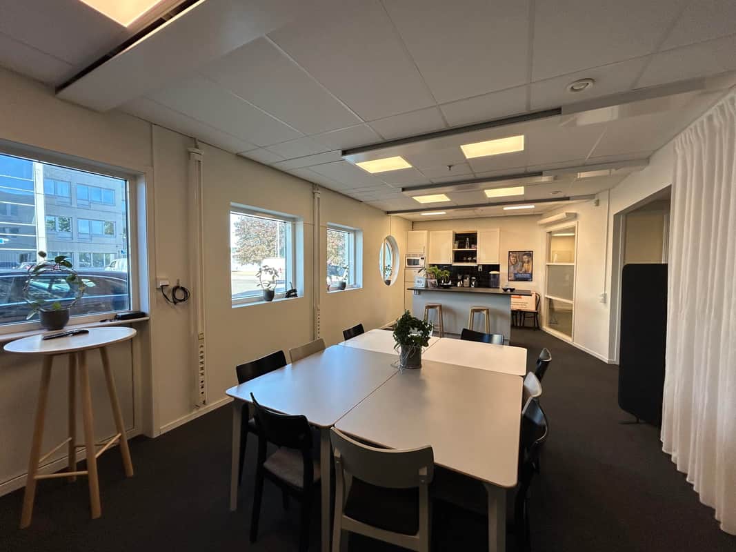 Lokalen har en öppen planlösning som skapar ett luftigt kontorslandskap, med flexibiliteten att enkelt skärma av för ett pentry eller lunchpausyta. För dig som behöver ett avskilt arbetsutrymme finns även ett enskilt kontorsrum som med fördel även kan användas som mötesrum.