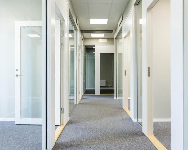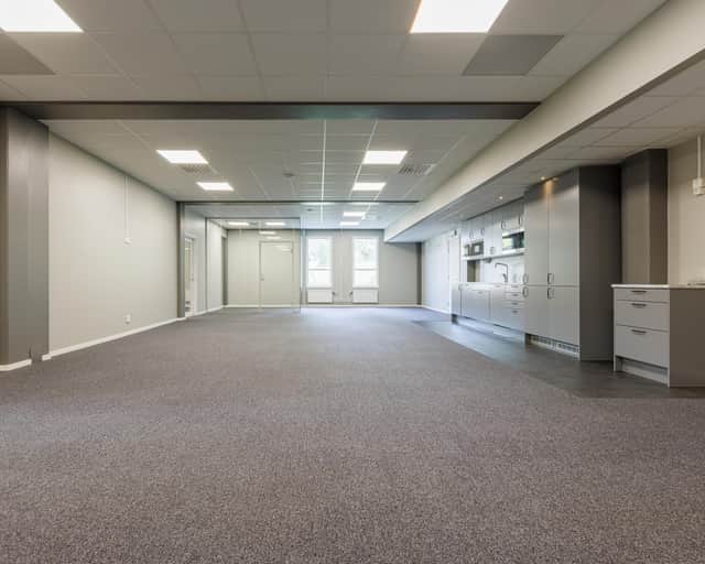 Ljusa kontorslokaler med bra umgängesytor samt bakutrymme med möjligheter till lager eller produktion.